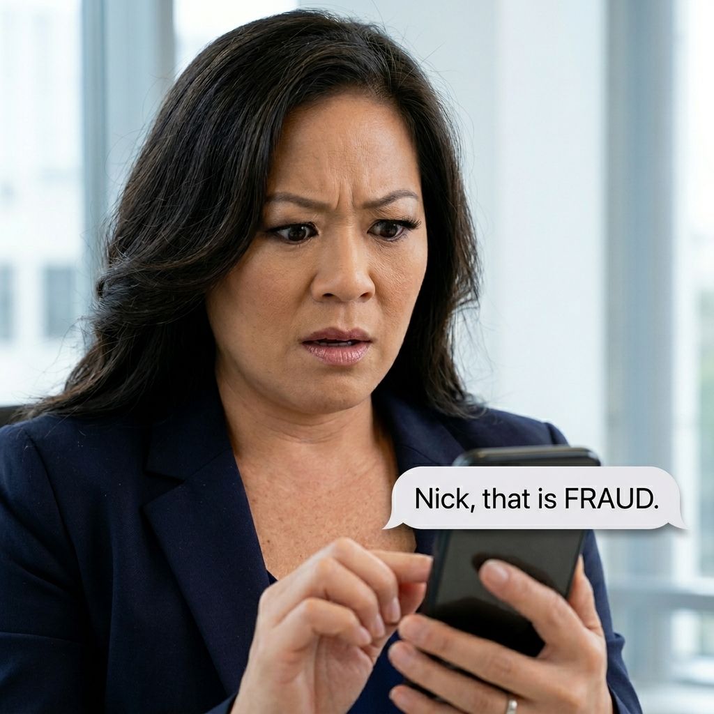As part of his game plan, he noticed I never filed that mortgage lien on his house back in 2016. He wanted me to retroactively file it. In confidence, I texted Megan Kau to ask if my retroactively filed mortgage lien would supersede the government's claim to the assets. Her response was blunt: "NICK, that is called FRAUD."